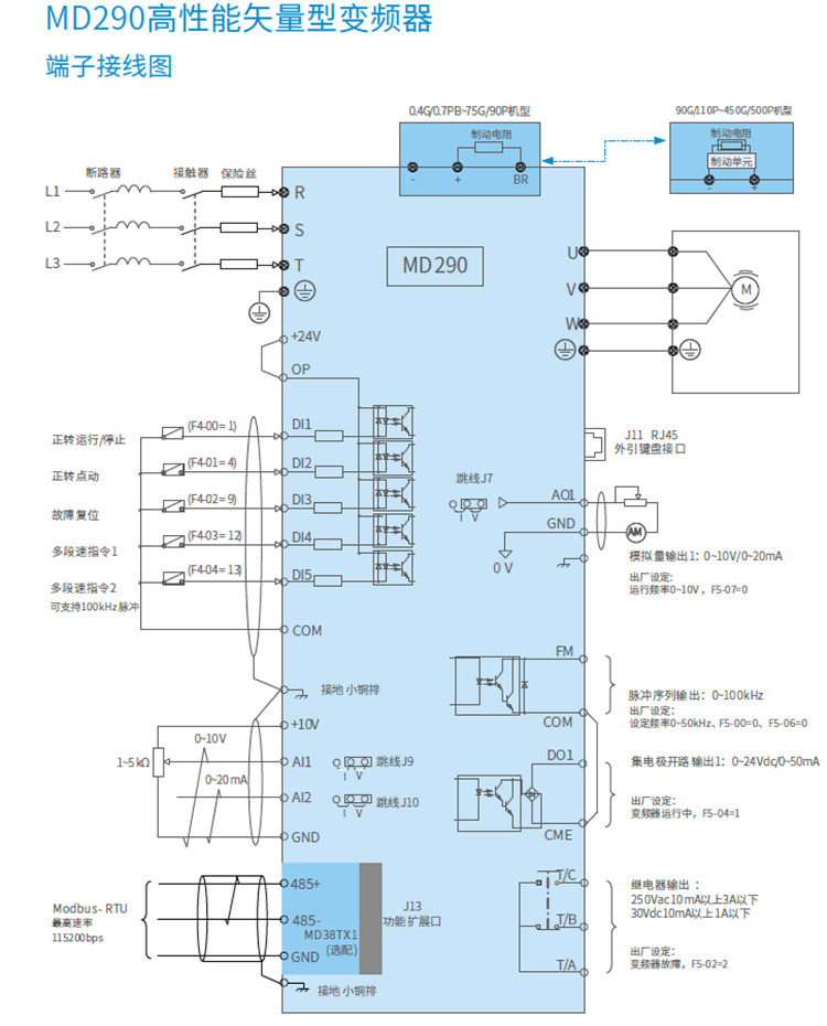 MD290-2T2.2G/3.7PB匯川變頻器三相220V變頻器2.2KW